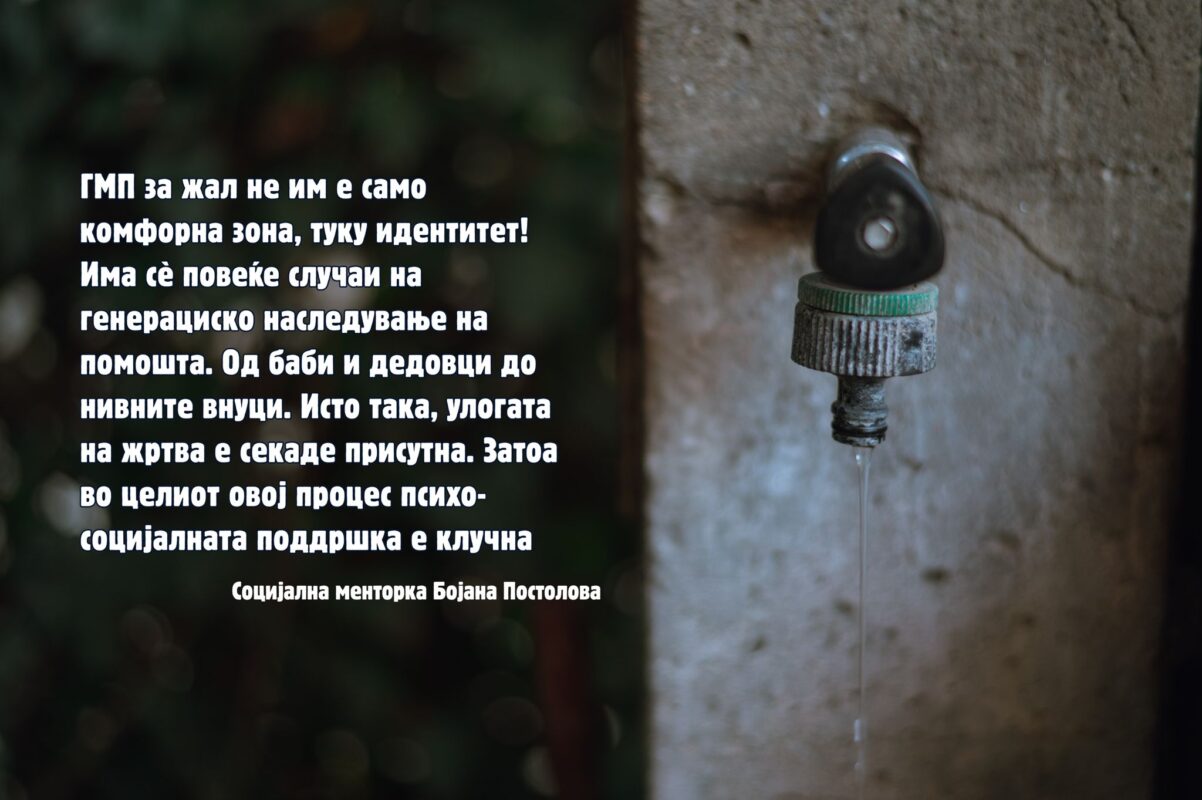 Колку повеќе разговарам со корисници, толку повеќе излегува на површина тој психолошки момент на зависност од редовно примање на минимални средства. И кога на нивната несигурност ќе ја додадете неефективноста на системот (недоволна реализација на програми за нивно вработување, со период на адаптација на работно место, па потоа укинување на паричните средства од ГМП правото), тогаш го имаме овој резултат – децидна е Новаковска.