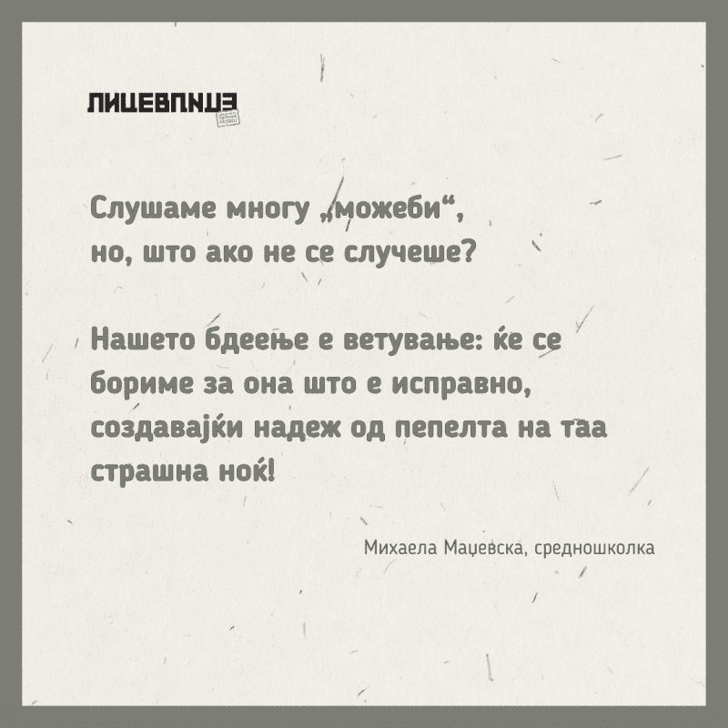 Семејствата на загинатите во катастрофалниот пожар во дискотеката „Пулс“ во Кочани одржаа протестен марш – наречен „Марш на ангелите“ – денеска во Скопје. Тие, заедно со многу поддржувачи, се собраа точно напладне пред Јавното обвинителство, носејќи фотографии од своите загинати деца и транспаренти со силни пораки. Маршот започна во 12:05 часот, што симболично ја претставува „задоцнетата реакција“ на надлежните институции, бидејќи трагедијата се случи пред еден месец. Протестот беше мирен, но наполнет со емоции – болка, гнев и разочараност – додека присутните бараа одговорност за 62-те млади животи изгубени во пожарот.
