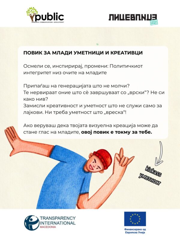 Повик за млади уметници и креативци: Осмели се, инспирирај, промени – Политичкиoт интегритет низ очите на младите