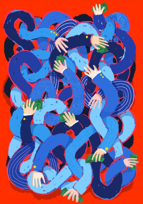 – Илустрацијата ја прикажува заплетеноста на корупцијата и непотизмот – игри на моќ кои се сплетуваат во вечен јазол, каде единствениот излез е да се пресечат конците. Како што народот вели – „заплеткани како црева“, делото визуелно ја следи патеката на парите низ еден лавиринт без почеток и крај. Стилот инспириран од стрит арт графити културата ја носи пораката до сите, додека црвената позадина ја нагласува ургентноста и потребата за акција. Сите ние сме загушени и загубени длабоко внатре во оваа збрка, и овој цртеж пробува да даде друга перспектива на ситуацијата- посочува авторката.