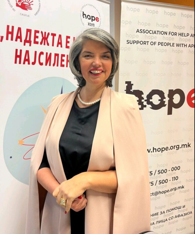 Афазија е невролошко нарушување кое го отежнува говорот по мозочен удар. Адвокатката Мирјана Марковска ја раскажува својата лична борба, како ја совладала состојбата и создаде здружение „Хоуп“ за поддршка на лица со афазија и нивните семејства