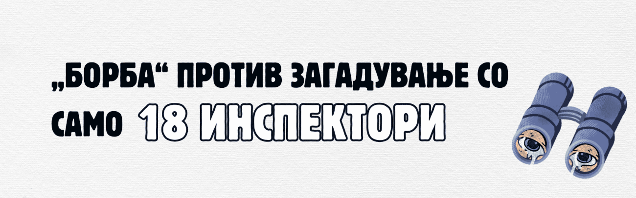 -Во моментов има 18 државни инспектори, 13 за животна средина, два водостопански, три за заштита на природата и шест административни службеници. Инспекторатот работи со половичен капацитет од само 50% од вкупно 50 систематизирани средства. Се работи на измени на регулативата за формирање единствено инспекциско тело во животна средина – велат од Државниот инспекторат.