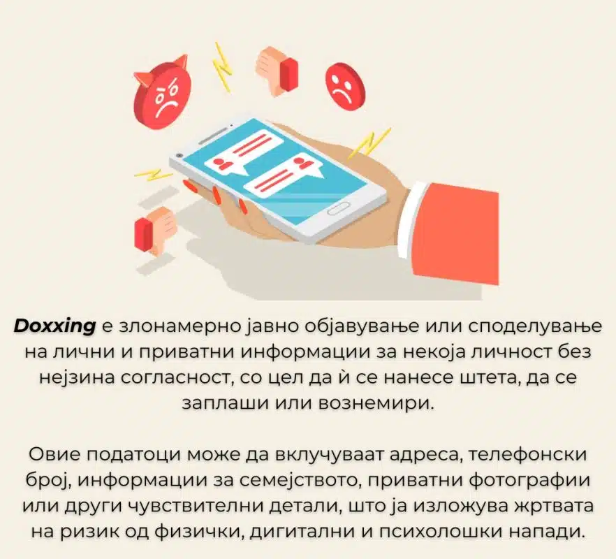 – Кога се објавуваат адреси, телефонски броеви, информации за деца, роднини, па дури и рутини на движење, тоа отвора простор за физичко следење, вознемирување, а во некои случаи и реални напади. За новинарките и активистките, тоа значи компромитација на нивната работа, тишина наместо истрага, и изолација наместо јавен говор. Без соодветна заштита и институционален одговор, doxxing станува ефикасно оружје за загрозување на слободата на изразување – изјави м-р Лилјана Пецова Илиеска, експертка по дигитални права и претседателка на здружението ИМПЕТУС – Центар за интернет, развој и добро управување.